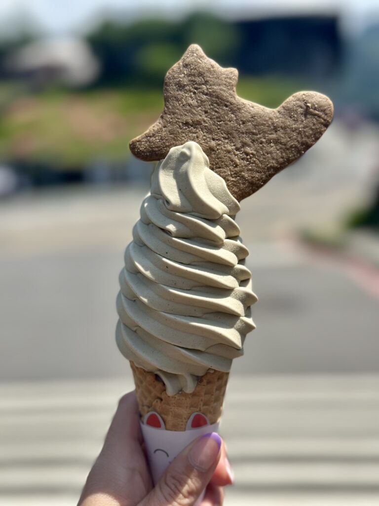 Whatever you decide to do while in Maokong, don’t skip the famous tea ice cream! Not only are the cones super cute with the cat shaped cookie (Maokong does mean cat hole after all), but the ice cream was very tasty and perfect for cooling off. Green is baozhong oolong tea flavor and brown is tieguanyin flavor.